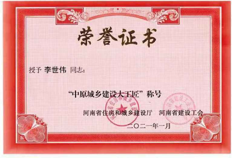 bat365在线登录入口-bat365(中国)李世伟同志获“中原城乡建设大工匠”称号